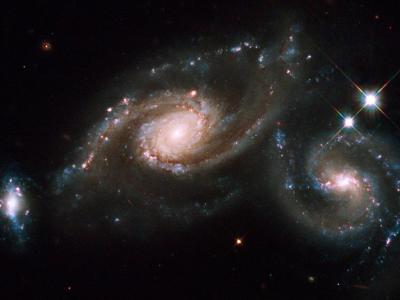 这张NASA/ESA哈勃太空望远镜拍摄的NGC 7722透镜星系图像,该星系位于约1.87亿光年外...