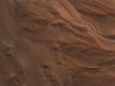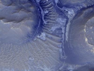 美国宇航局火星勘测轨道飞行器拍摄的火星一个陨石坑边缘的沟渠