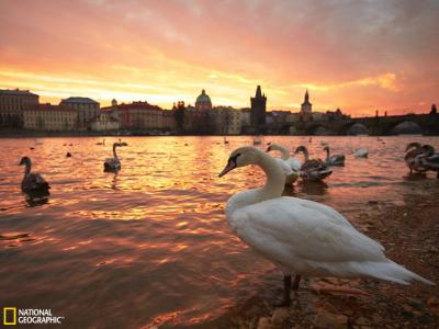 伏尔塔瓦河上的天鹅