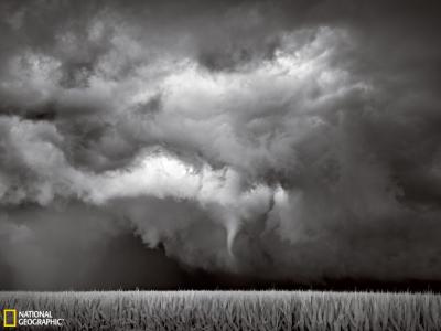 美国明尼苏达州玉米田上空的漏斗云