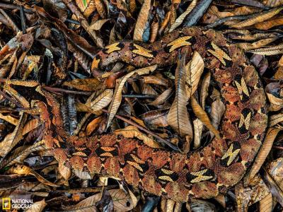 喀麦隆犀咝蝰 犀咝蝰能出其不意地攻击猎物,并用致命的毒液杀死对手。这种毒液药...