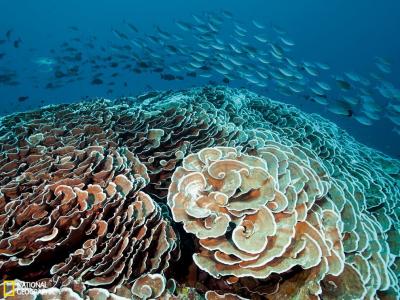 印尼巨大甘蓝珊瑚 印度尼西亚四皇群岛一座海底山斜坡上的巨大甘蓝珊瑚。这个巨大...