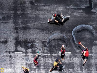 泰国泼水节 这是泰国的传统节日泼水节。飞洒的水花意味着将坏运气冲走,并且也是...