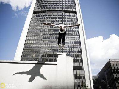 蒙特利尔的酷跑爱好者 蒙特利尔的一名酷跑爱好者,用后空翻从4米的高度纵身跃下...