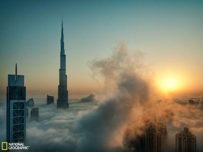大雾中的迪拜摩天大楼 每年的10月前后,迪拜都会因为居高不下的湿度和温度不断下...