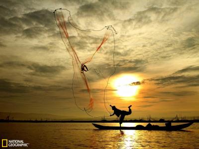 印度尼西亚爪哇中部拉瓦佩宁渔民撒网