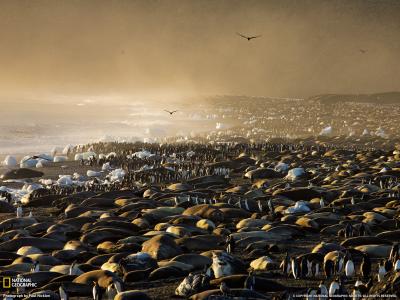 南大西洋南乔治亚岛的王企鹅和象海豹
