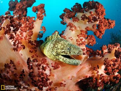 海鳗在骏河湾软珊瑚的枝杈中间穿行
