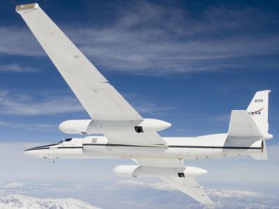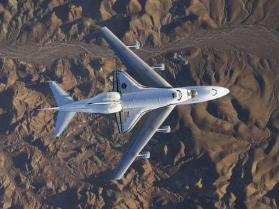 改装过的波音747背着结束STS-126任务的奋进号航天飞机,飞行途中经过加利福尼亚州...