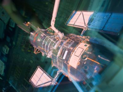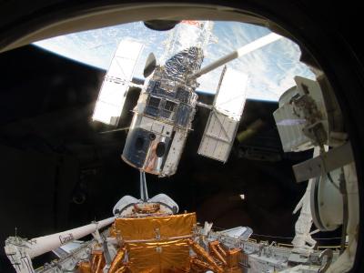 执行STS-125任务的亚特兰蒂斯号航天飞机在太空中准备离开哈勃太空望远镜