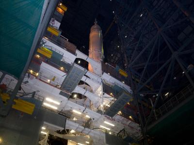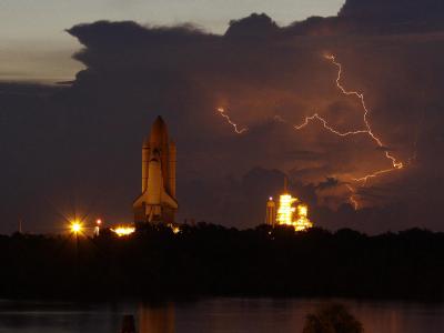 美国宇航局肯尼迪航天中心发射架上执行STS - 128任务的发现号航天飞机