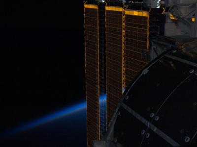 在国际空间站拍摄的被飞机撞击后的纽约世