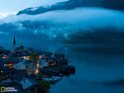 奥地利小镇哈尔斯塔特 奥地利小镇哈尔斯塔特,夜幕降临后,游人们纷纷回去休息,...