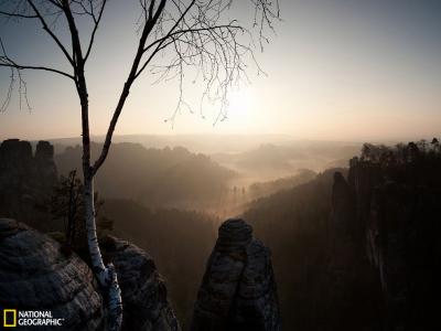 德国巴思泰巨石上的日出 巴思泰巨石上的日出。这是今年德国的第一个晴朗天气,巴...