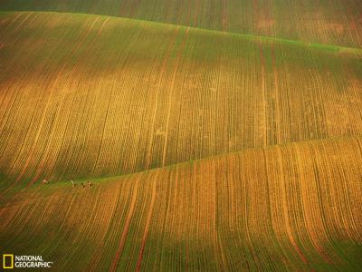捷克的摩拉维亚原野 捷克的摩拉维亚,几只鹿在波浪形的原野上享受时光。