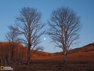 美国科罗拉多州原野升起月亮 在11月份的傍晚,原野上升起一轮月亮,景色让人着迷。