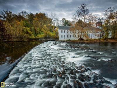 美国特拉华州布兰迪万河 布兰迪万河为19世纪的美国工业提供了动力。河岸边的纺织...