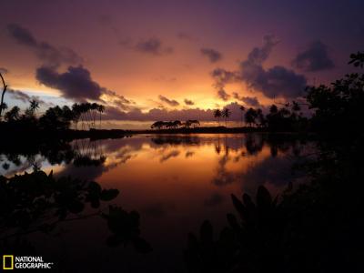 斯里兰卡河边落日景象 斯里兰卡沿海公路的一条河边,绚烂的落日染红天际,倒映在...