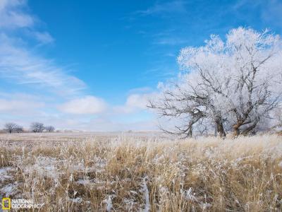 美国怀俄明州原野 美国怀俄明州,这茫茫白色看起来有像白霜,但其实是一场初降的...