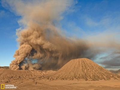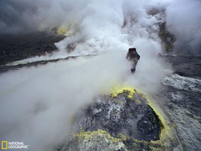 俄罗斯堪察加半岛火山 俄罗斯堪察加半岛,一名执行考察任务的火山学家正在穆特洛...