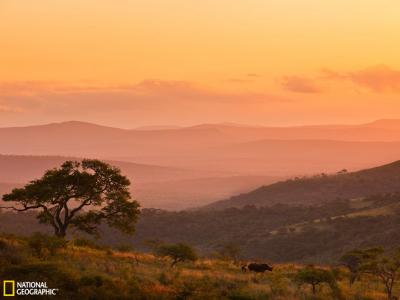 南非的犀牛 南非夸祖鲁纳塔尔省,一头犀牛站在山坡上。