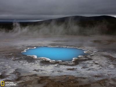 冰岛内陆热水池 冰岛内陆的一大亮点就是照片展示的热水池,里面含有大量硅,呈现...