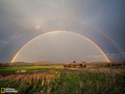 美国尚普兰湖美丽彩虹 这张照片摄于2011年10月20日,当时太阳刚刚下山,佛蒙特州...