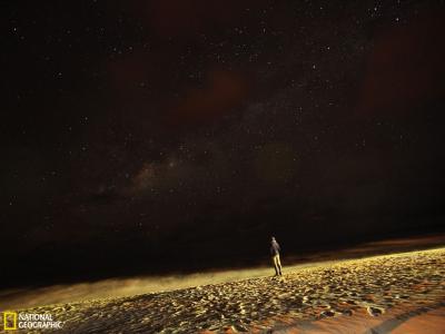 东非大裂谷马拉维湖边凝望星空的人 马拉维湖位于非洲东非大裂谷最南端。一个男人...