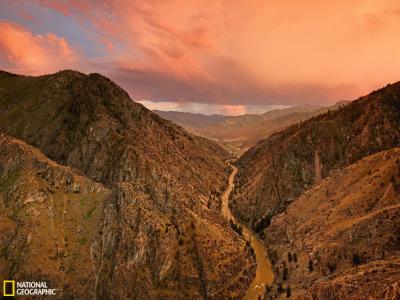 美国爱达荷州鲑鱼河 美国爱达荷州萨尔蒙-查利斯国家森林公园鲑鱼河,这段长达10...