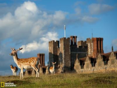 英国古老鹿苑 英国肯特郡科诺勒的一家鹿苑,几只鹿抬着头,注视着远方。从詹姆斯...