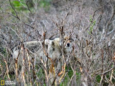 美国迪纳利国家公园一头狼 在美国阿拉斯加州内陆的迪纳利国家公园,一头狼与周围...