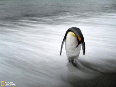 南极洲独行的企鹅 摄影师在清晨5点的时候来到了南乔治亚岛的沙滩上,试图拍摄日...