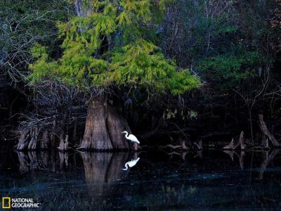 美国佛罗里达州的大白鹭 在佛罗里达州坦帕的Hillsborough河上,常可以见到美丽的...