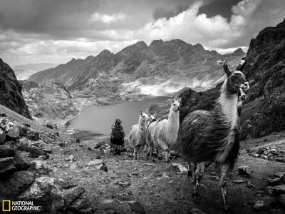 秘鲁山区偶遇大羊驼 在秘鲁的安第斯山脉徒步数天之后,摄影师及其团队在海拔460...