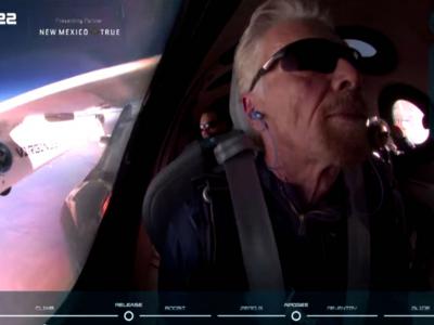 英国维珍集团创办人布兰森Richard Branson搭乘维珍太空船团结号抢在贝索斯前进入太...