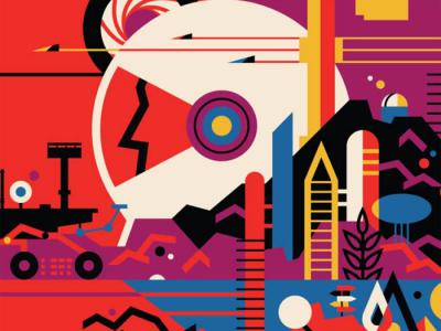 以红色作为火星的旅行海报,非常贴切。 在土卫二之上观察土星。 坐在穿梭机...