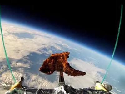 英国年轻人送羊排上太空 (神秘的地球报道)据中新网:英国一群年轻人为了让自己...