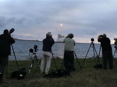 猎户座无人太空船顺利升空 搭载猎户座无人太空船的火箭喷出强烈的火焰 火箭...