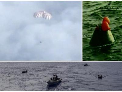 太空舱成功返回地球 太空舱降落时所用的降落伞 太空舱正降落于太平洋 (神...
