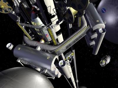 奈米科技提供了高强度、轻质量的纤维来制作太空电梯的缆线。绘图:PAT RAWLING, ...
