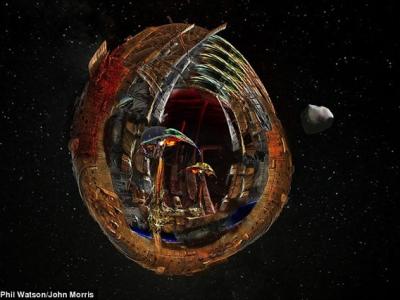 艺术概念图,展示了所谓的“世界飞船”。新研究发现如果想实现星际旅行的梦想,科...