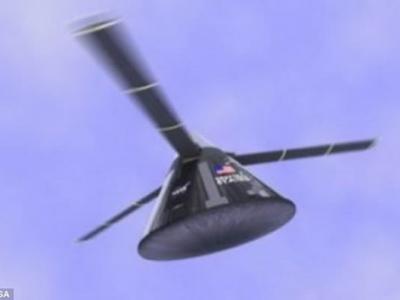 概念图像显示一个太空舱返程地球,它使用一个转子叶片系统代替降落伞。当太空舱进...