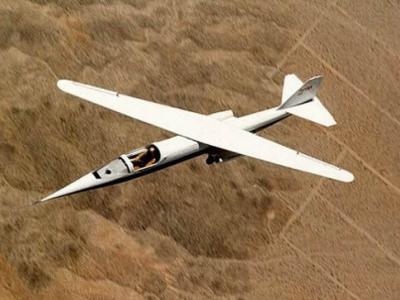 美国宇航局上世纪70年代研制的研究机AD-1,在设计上用于研究绕轴旋转的机翼。 ...