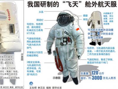 神舟七号宇航员所穿的舱外航天服图解 新华社发