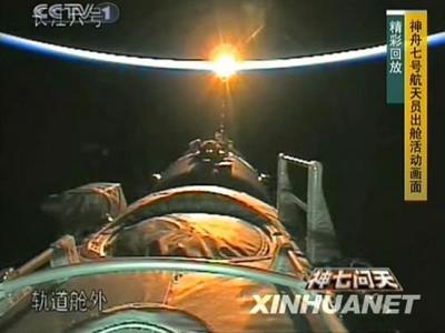 航天员翟志刚、刘伯明在神舟七号飞船轨道