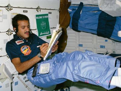 1985年6月,在STS-51G任务部署阿拉伯卫星-1B通信卫星期间,沙特宇航员苏丹·萨勒曼...