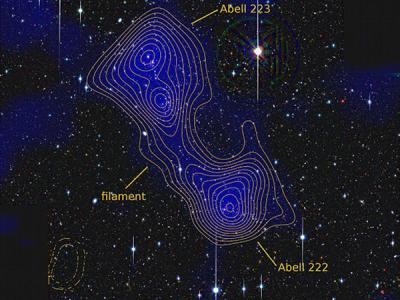 Abell 223星团与Abell 222星团间的巨大“宇宙桥” 科学家发现罕见的“宇宙骨架”...