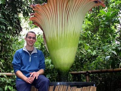 泰坦魔芋是世界上最大、最臭的花,目前英国康沃尔郡伊甸园展览馆一株2.8米高泰坦...