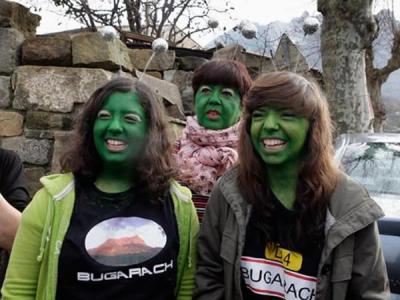 三名妇女将自己打扮成外星人的模样在比加拉什等待世界末日的到来 两名恶作剧者...