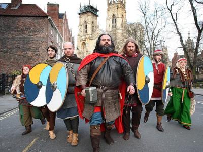许多人打扮成维京战士,赶到英国约克市迎接末日到临。 维京人相信北欧神话声称...